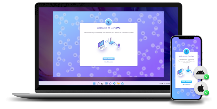 SendMe 轻松连接 Windows、Mac、Android 和 iOS。 (无论操作系统如何,都可以安全、快速地传输文件。)