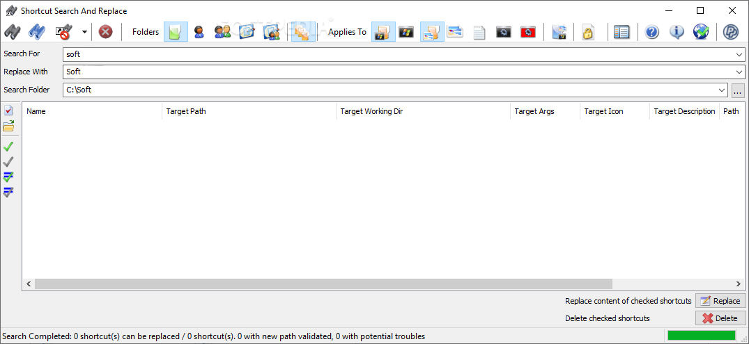 Shortcuts Search And Replace 允许您搜索快捷方式目标路径、工作目录、参数和图标位置内容。您可以替换多个快捷方式目标路径、工作目录、参数和图标位置内容 – 这在将便携式应用程序移动到另一个驱动器或另一个文件夹时非常有用。它还可以搜索死链接,以解决或删除它们(单击即可多次解决/删除)。您还可以选择将所选文件或所有文件复制到剪贴板,或者将它们保存为 XML、TXT、HTML 或 CSV 文件格式。