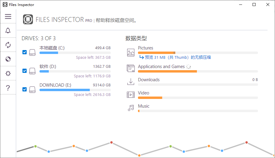 文件分析:软件可以分析计算机中的文件,以图表和报告的形式显示文件的使用情况、占用空间等信息。