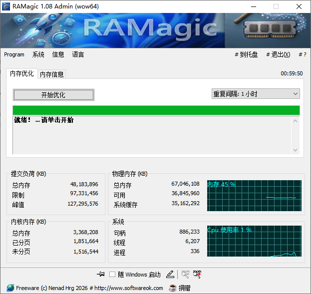RAMagic 是一款紧凑、便携的 RAM 家养小精灵。它分析正在运行的进程,清除不必要的工作集,并使保留的备用缓存再次可用。具有实时内存监控、前后比较和管理员模式。非常适合游戏玩家、设计师以及任何想要从 PC 中获得更多性能的人。