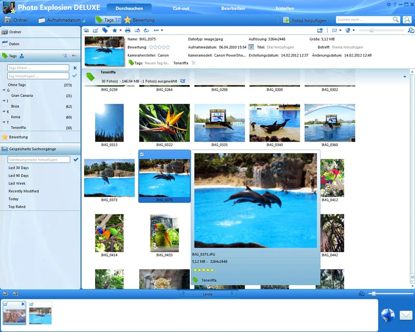 使用易于使用的照片整理软件将您的照片放入相册中。添加关键字和评级以快速查找照片。