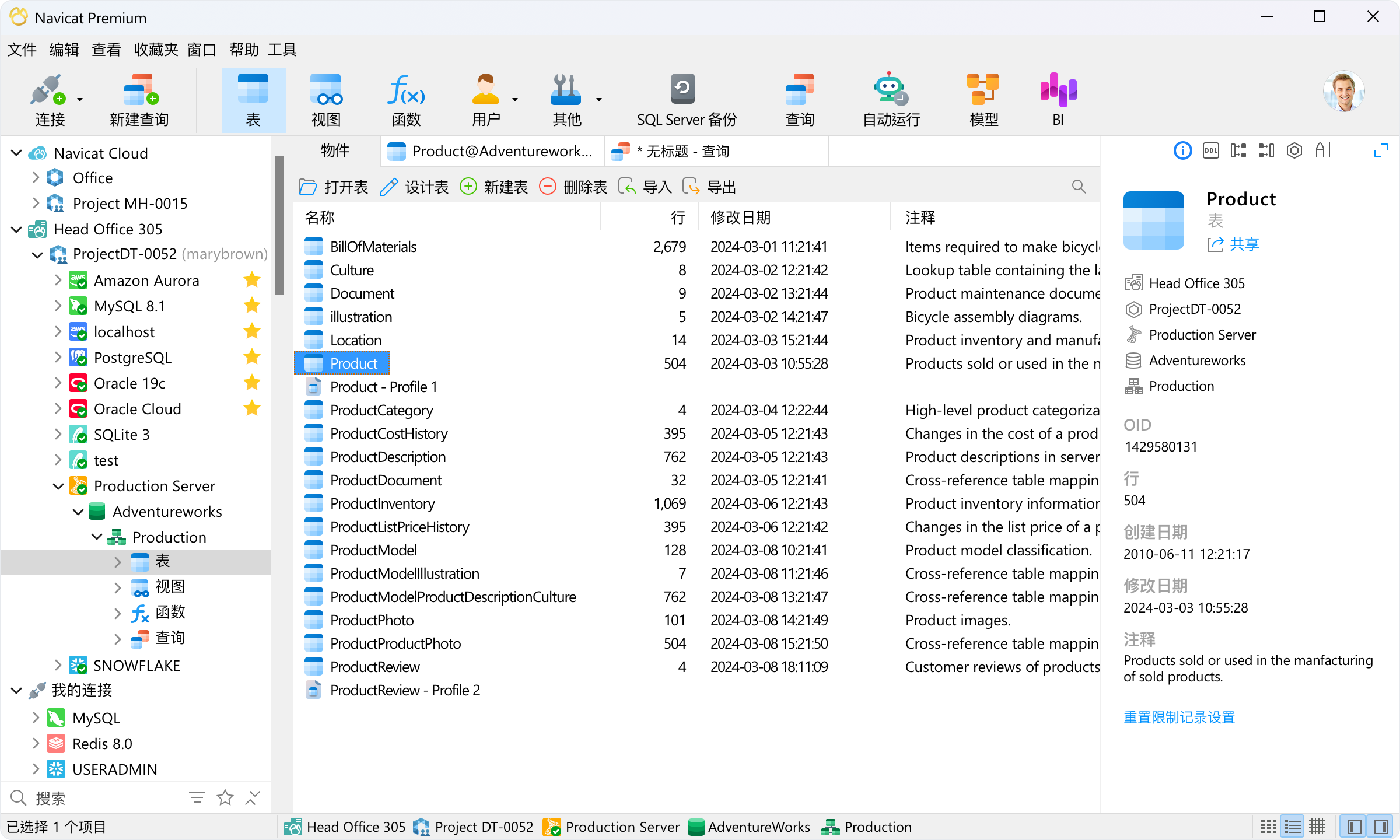 Navicat Premium使您能够通过各种数据库系统有效地传输数据,或使用SQL格式和编码来传输纯文本文件。 不同类型数据库的批量作业可以安排在特定时间运行。 其他功能还包括导入/导出向导,查询生成器,报表生成器,数据同步,备份,作业计划程序等。 Navicat为专业开发人员提供了专门针对他们需求的复杂功能,但是对于刚接触数据库服务器的用户来说很容易学习